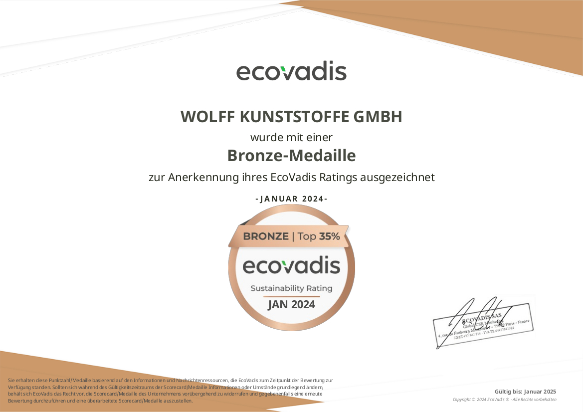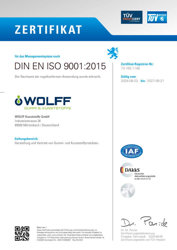 Zertifikate Download Zertifikate TÜV Zertifikat 9001 TÜV Zertifikat 13485 EcoVadis Rating Certificate Jetzt Projekt anfragen Ob Serienfertigung oder Einzelstück – wir beraten Sie persönlich, schnell und lösungsorientiert. Kontaktieren Sie unser Team direkt. Beratung anfragen Anschrift WOLFF Kunststoffe GmbHIndustriestraße 2869509 Mörlenbach Produkte Polyurethan (PU/PUR) Formartikel Polyurethan Walzen und Rollen Polyurethan Platten, Leisten und Schneidleisten Latex Tauchteile Gummi Form- und Stanzteile CONFORM® Med. Luftkissensysteme Infos Impressum Datenschutz AGB Karriere Qualitäten Downloads Kontakt +49 (0)6209 72000 info@wolff-kunststoffe.de Beratung anfragen
